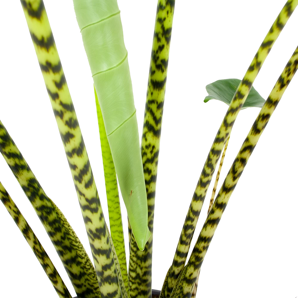 Deze grote binnenplant creëert een botanische sfeer in huis en zorgt voor een dierlijk tintje. De stelen van de Alocasia Zebrina hebben namelijk een opvallende zebraprint en de enorme hartvormige bladeren doen denken aan de oren van een olifant, vandaar de bijnaam Olifantsoor. In Zuid-Oost Azië, waar deze tropische plant zijn oorsprong vindt, worden de bladeren zelfs als schuilplek gebruikt. In huis staat deze echte eye-catcher graag op een zonnige plek zo’n 2 meter van het raam. Geef de plant regelmatig water en zorg dat de grond licht vochtig blijft. Schrik niet: de Alocasia Zebrina staat erom bekend zijn oude bladeren af te stoten.