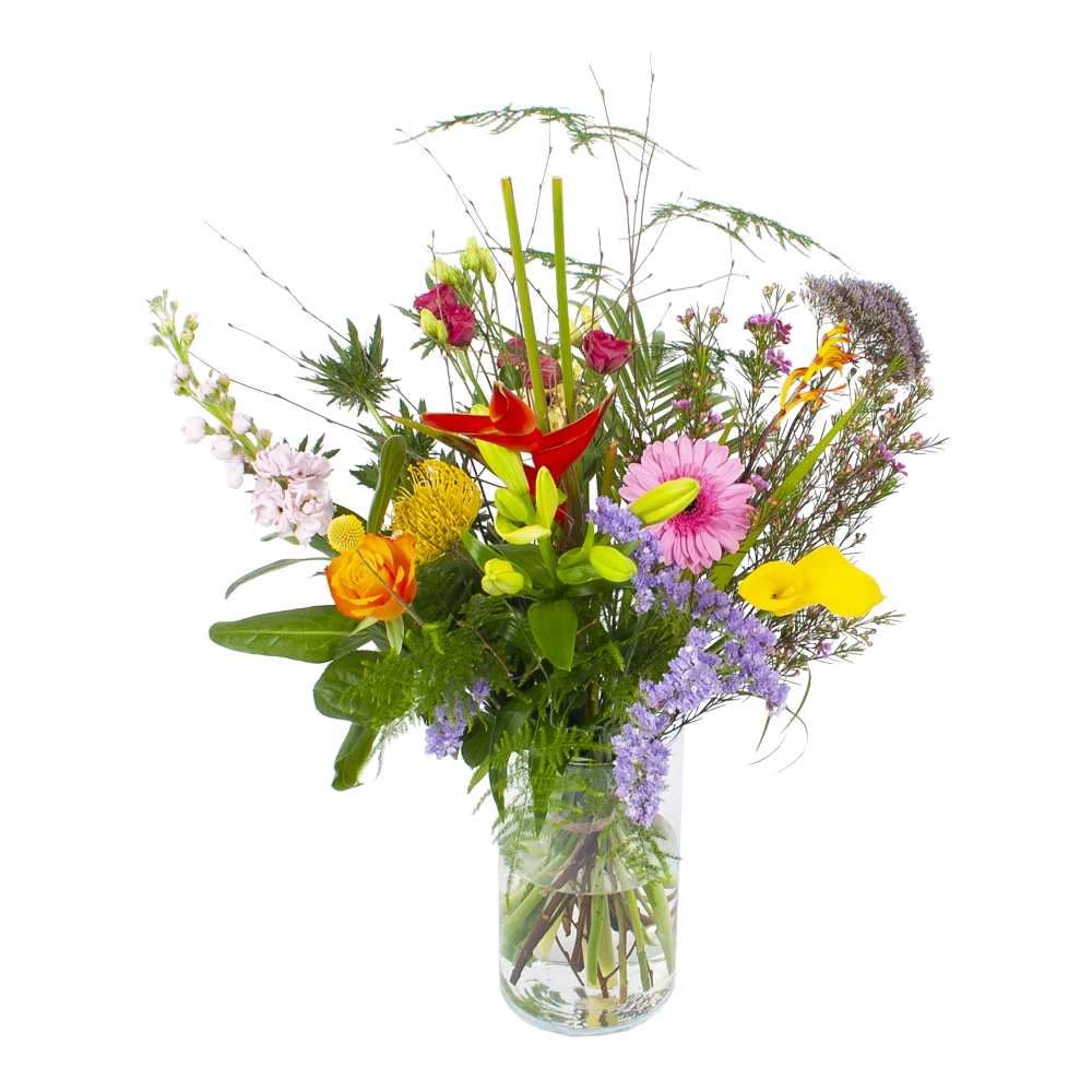 De combinatie van vrolijke en frisse bloemen geven het veldboeket een gezellige uitstraling. Met dit boeket haal je de lente in huis. Bovendien is dit boeket geschikt voor verschillende gelegenheden, zoals feliciteren en bedanken of verstuur zomaar dit prachtige handgebonden boeket en verras de ontvanger! * Exclusief accessoires en vaas