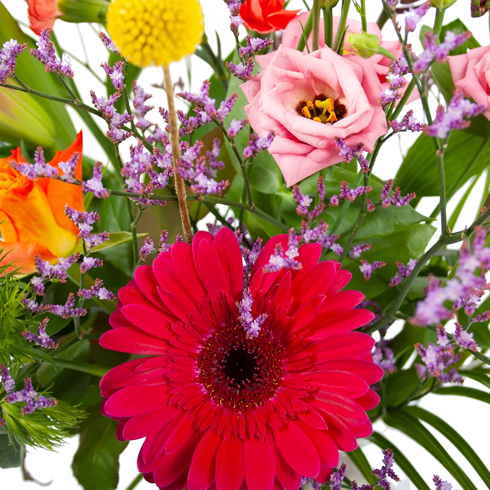 Met Boeket Kleurrijk geplukt breng je de gezelligheid in huis! Geniet van de verste en mooiste bloemen en fleur je huis op! Altijd vers van de kweker! Verwen jezelf of verras iemand anders met een prachtig boeket. *Exclusief accessoires en vaas.