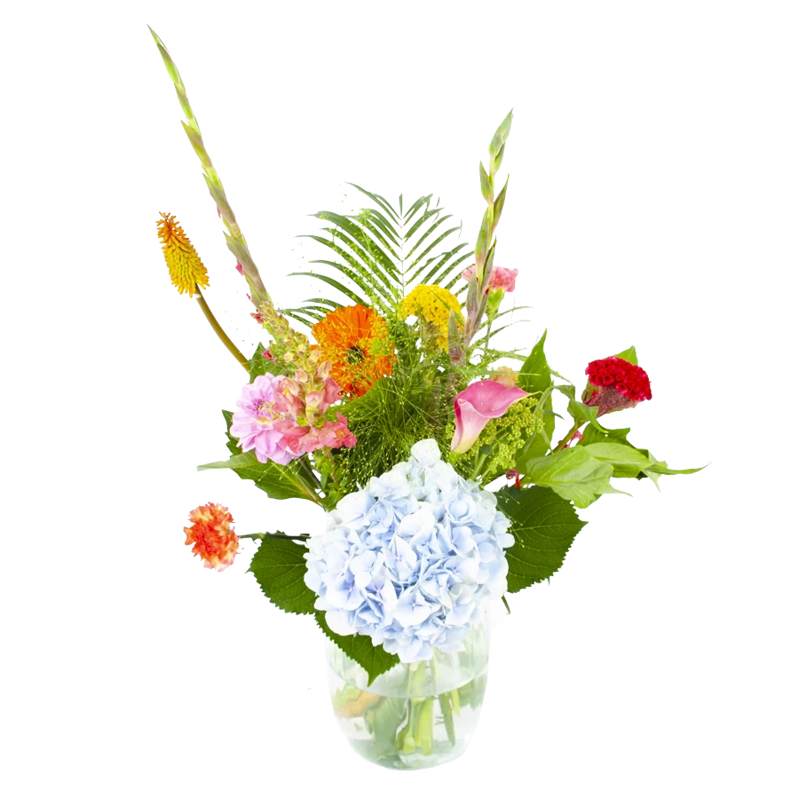 Met Boeket Lach breng je gezelligheid in huis. Het boeket zomerse en kleurrijke uitstraling. Verwen jezelf of breng bij iemand anders een lach op het gezicht! * Exclusief accessoires en vaas