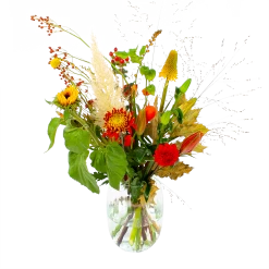 Met Boeket Pluim van het najaar breng je een prachtig najaarsboeket in huis! Verwen jezelf met verse bloemen of verras iemand anders! *Exclusief accessoires en vaas.