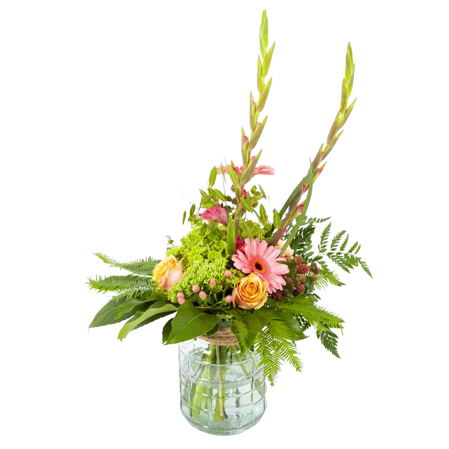 Met Boeket Sanne breng je een prachtig roze boeket in huis! Het boeket heeft kleurrijke en natuurlijke uitstraling. Verwen jezelf met roze bloemen van boeket Sanne of verwen je vriend of vriendin! * Exclusief accessoires en vaas