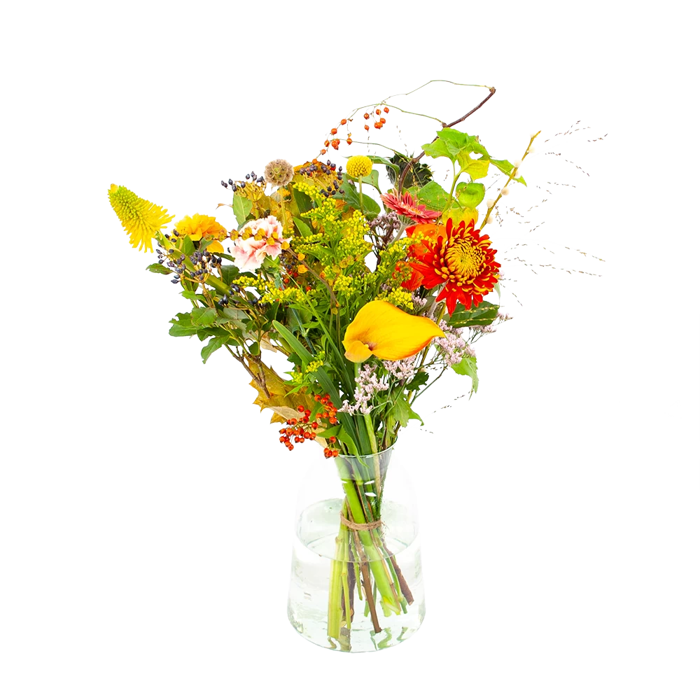 Met Boeket Vrolijk breng je een prachtig boeket in huis met de mooiste tinten voor het najaar! Verwen jezelf met verse bloemen of verras iemand anders! *Exclusief accessoires en vaas.