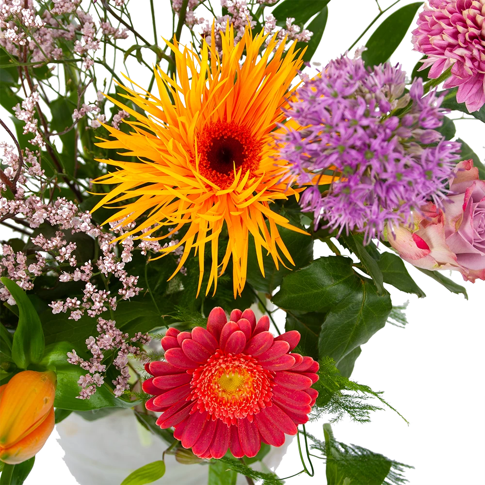 Met Boeket Vrolijk breng je een prachtig boeket in huis met de mooiste tinten voor het najaar! Verwen jezelf met verse bloemen of verras iemand anders! *Exclusief accessoires en vaas.