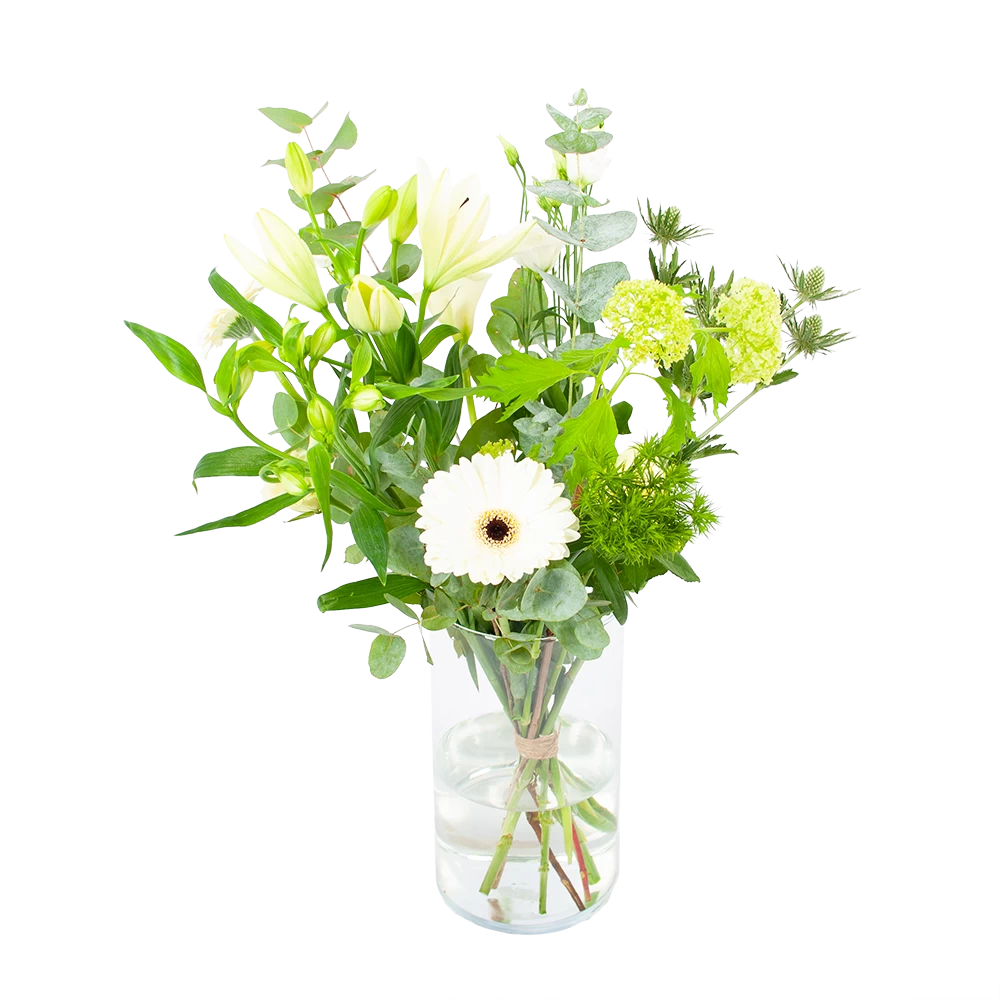 Met Boeket Wit gebaar haal je een prachitg wit boeket in huis! Geniet van de mooiste witte bloemen. Altijd vers van de kweker! Verwen jezelf of verras iemand anders met een prachtig boeket. *Exclusief accessoires en vaas.