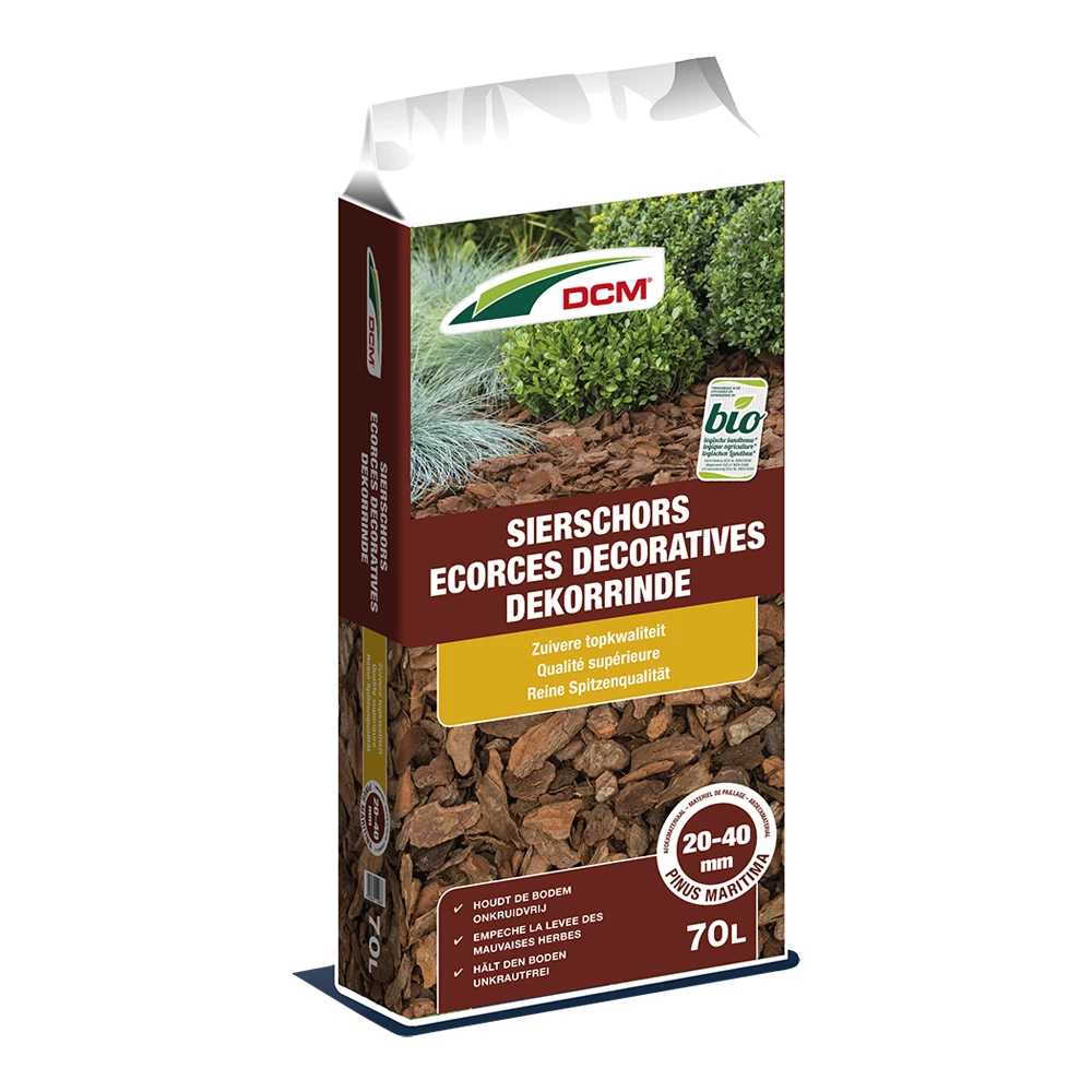Bruinrode schors, uitgezeefd op fractie 20-40 mm. Kleurvast en decoratief natuurproduct dat als fysische barrière de bodem onkruidvrij houdt en beschermt tegen uitdroging en vorst. Verteert zeer langzaam.