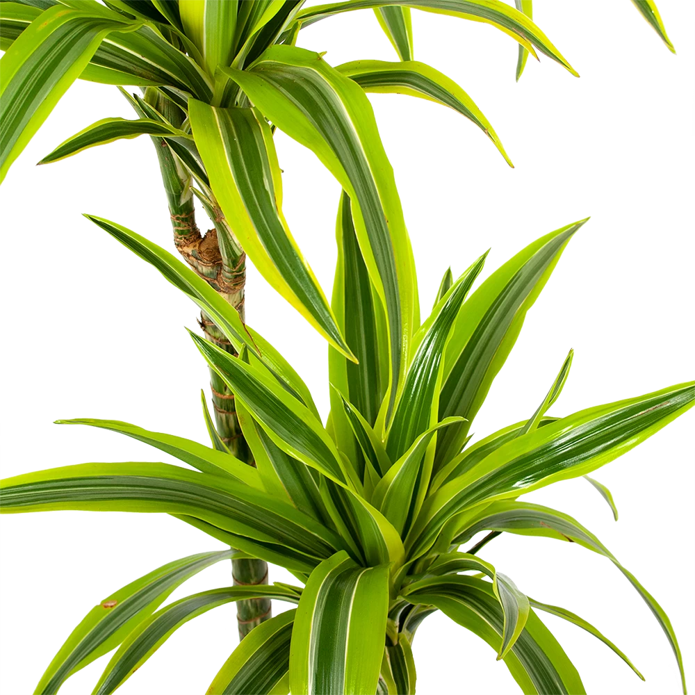 Zoals de naam al verraad, heeft deze grote kamerplant frisgroene bladeren met geelgroene strepen. De Lemon Lime brengt een tropische sfeer in huis en is ook nog eens sterk luchtzuiverend. Geef deze makkelijke kamerplant af en toe wat water en laat de grond tussen de waterbeurten door droog staan, Dracaena’s verbruiken namelijk maar weinig water. Hoewel deze soort goed tot zijn recht komt op schaduwrijke plekken, doet de Lemon Lime het vanwege zijn lichte bladeren ook goed op een wat lichtere plaats.