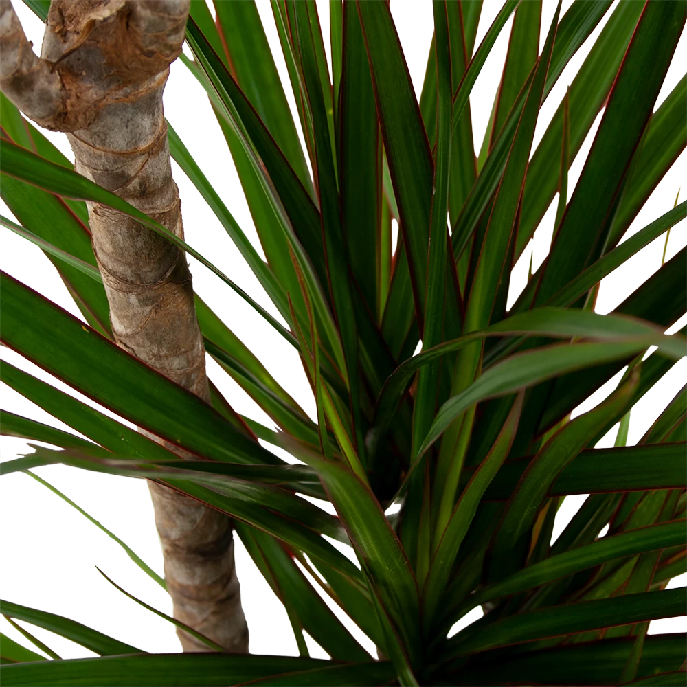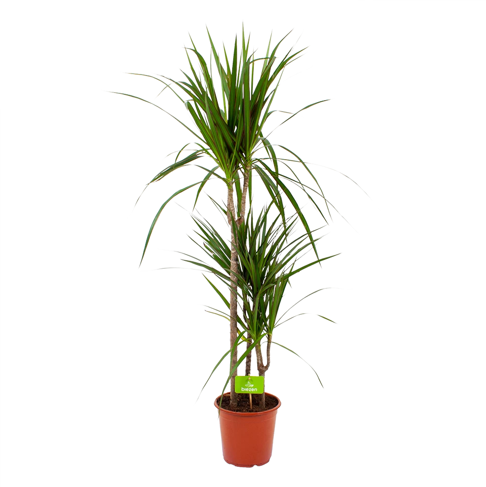 De Marginata Groen is een typische Dracaena en daarmee ook een makkelijke kamerplant. Hij valt op vanwege zijn smalle, sprieterige donkergroene bladeren die hoog aan de stam groeien. De Marginata Groen is sterk luchtzuiverend en verlangt weinig verzorging. Geef de plant af en toe wat water en laat de grond tussen het water geven door droog staan. Plaats de Marginata Groen in de halfschaduw op zo’n 3 meter van het raam.