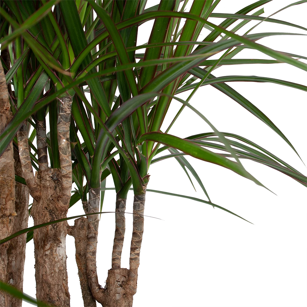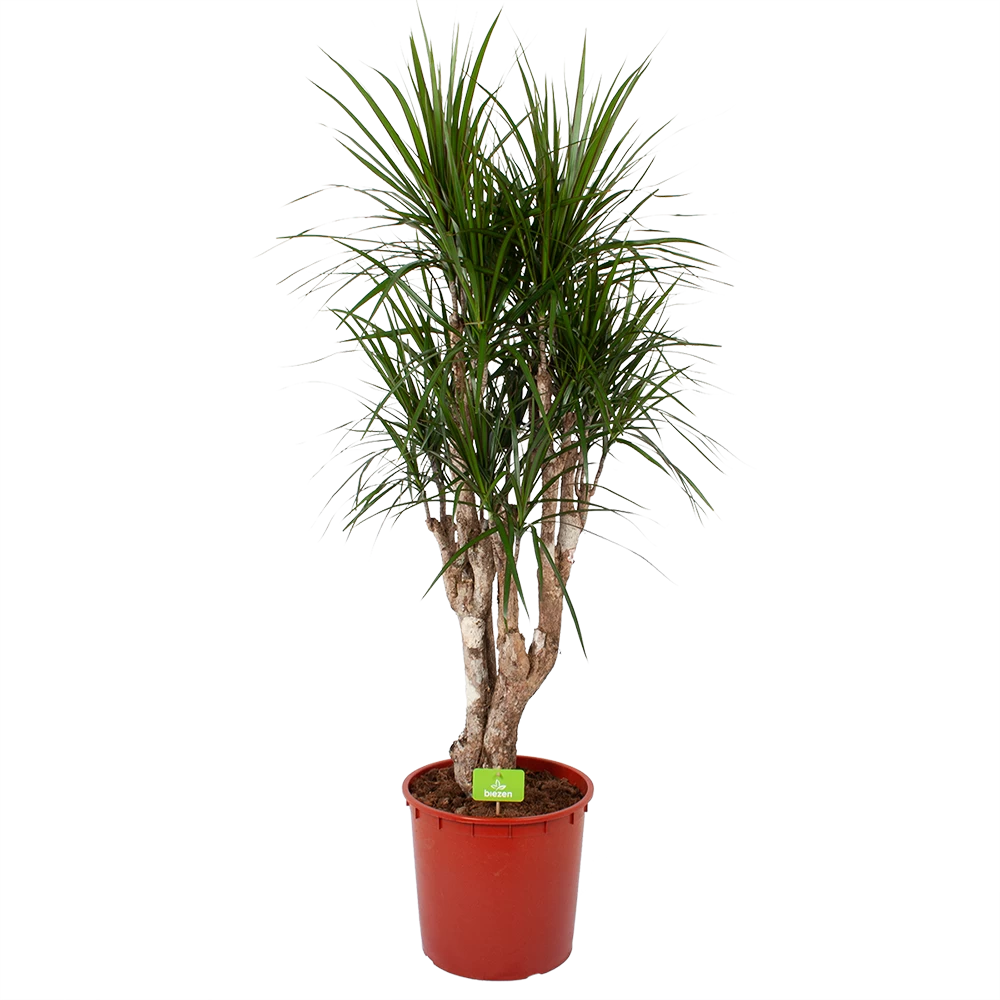 De Marginata Groen is een typische Dracaena en daarmee ook een makkelijke kamerplant. Hij valt op vanwege zijn smalle, sprieterige donkergroene bladeren die hoog aan de stam groeien. De Marginata Groen is sterk luchtzuiverend en verlangt weinig verzorging. Geef de plant af en toe wat water en laat de grond tussen het water geven door droog staan. Plaats de Marginata Groen in de halfschaduw op zo’n 3 meter van het raam.