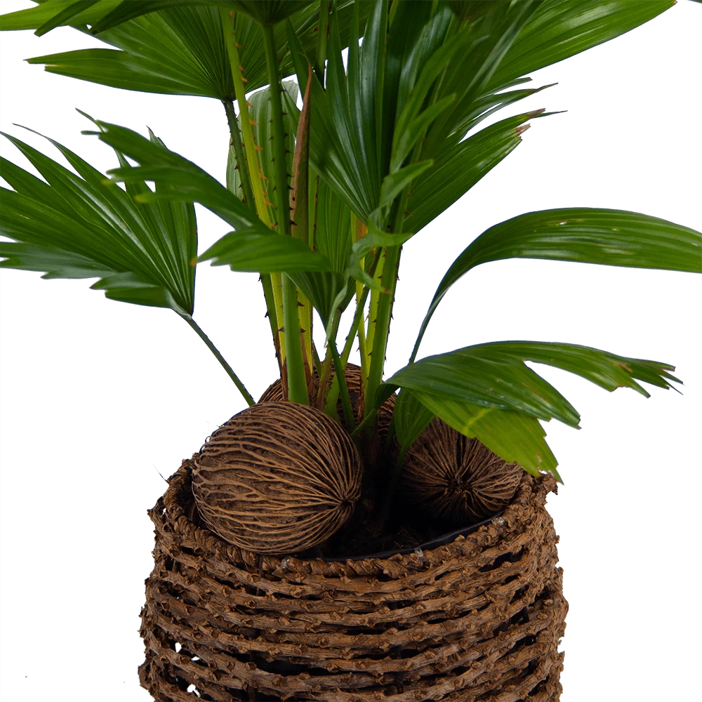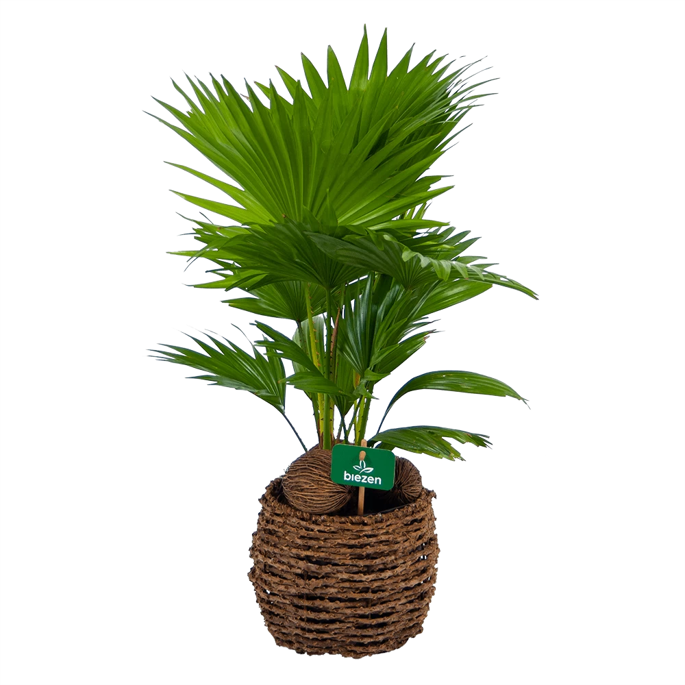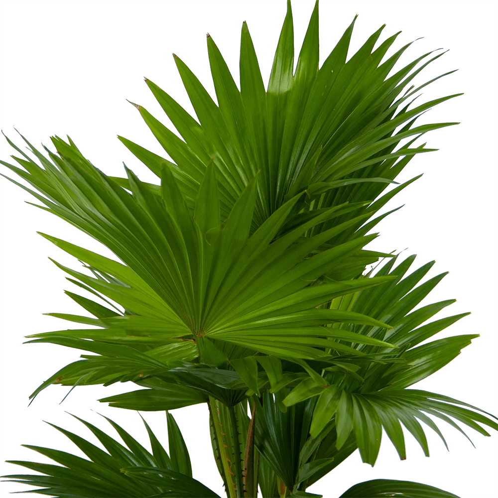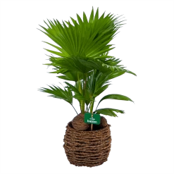 De waaierpalm heeft de bladvingers aan elkaar vergroeid waardoor ze hun grote waaiervormige bladeren hebben gekregen. De Livistonia rotundifolia heeft een luchtzuiverende werking.