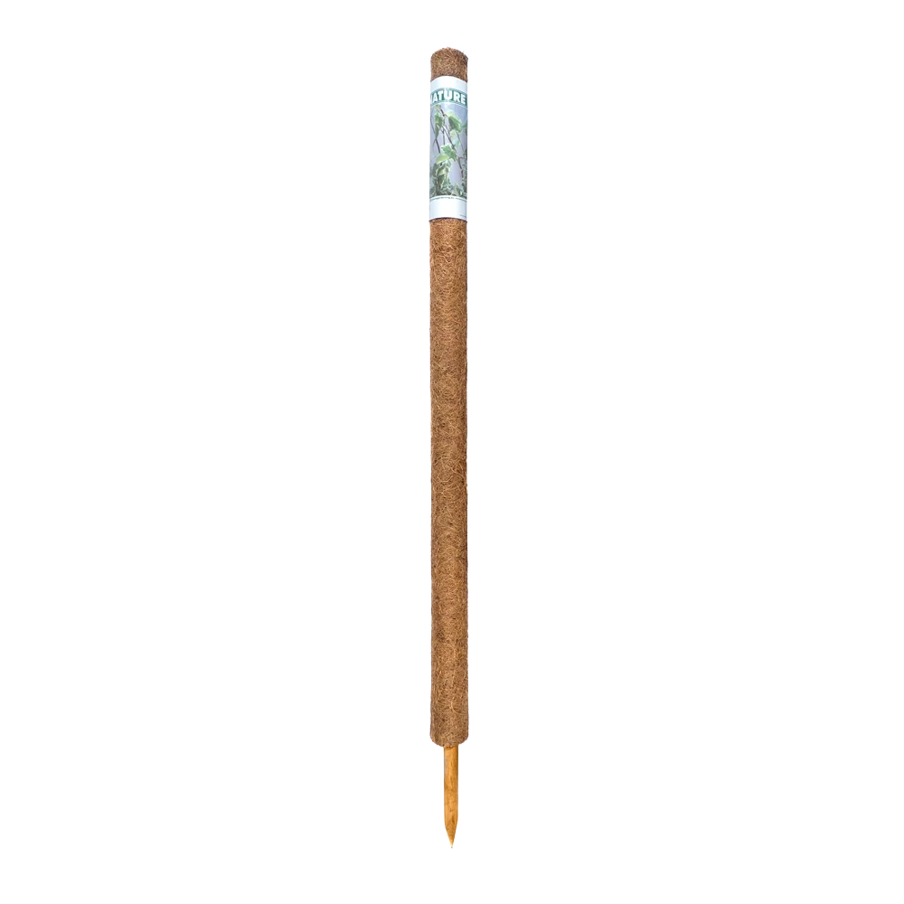 Kokosplantstokken van Nature die planten steunen en tegelijkertijd vocht vasthouden en afgeven. De plantensteun bestaat uit een pvc-buis met houten eindstuk en is omwikkeld met kokosvezels. De kokosvezel vergemakkelijkt de aanhechting van klimplanten en houdt water vast. Dit effect neemt toe bij een grotere diameter. De pvc-buis is zeer duurzaam en de plantensteunen kunnen in elkaar gestoken worden zodat ze ook geschikt zijn voor grotere planten. De kokokplantstokken zijn in verschillende afmetingen verkrijgbaar. Afmeting H 120 cm, diameter 60 mm.