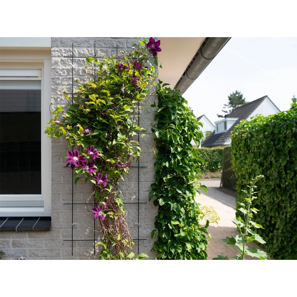 Decoratief rechthoekig metalen klimrek van Nature, gemaakt van grijs geplastificeerd verzinkt staal. Het weerbestendige klimrek van duurzaam materiaal is geschikt voor het begeleiden en ondersteunen van klimplanten. Geleverd met bevestigingsset. Afmeting: H 145 x 57 cm.