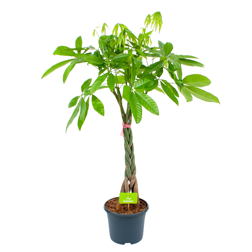 Wie wilt er nou geen geldboom? De Pachira Aquatica zou symbool staan voor geluk en voorspoed, vandaar dat hij een graag gegeven housewarming cadeau is. Deze grote groene plant heeft een mooi gevlochten stam en fijne ovaal groene bladeren. Plaats de Geldboom op een lichte plek met indirect zonlicht zo’n 3 meter van het raam. De plant slaat het water op in zijn stam, dus het is voldoende om hem zo’n 1 keer in de 2 weken water te geven.