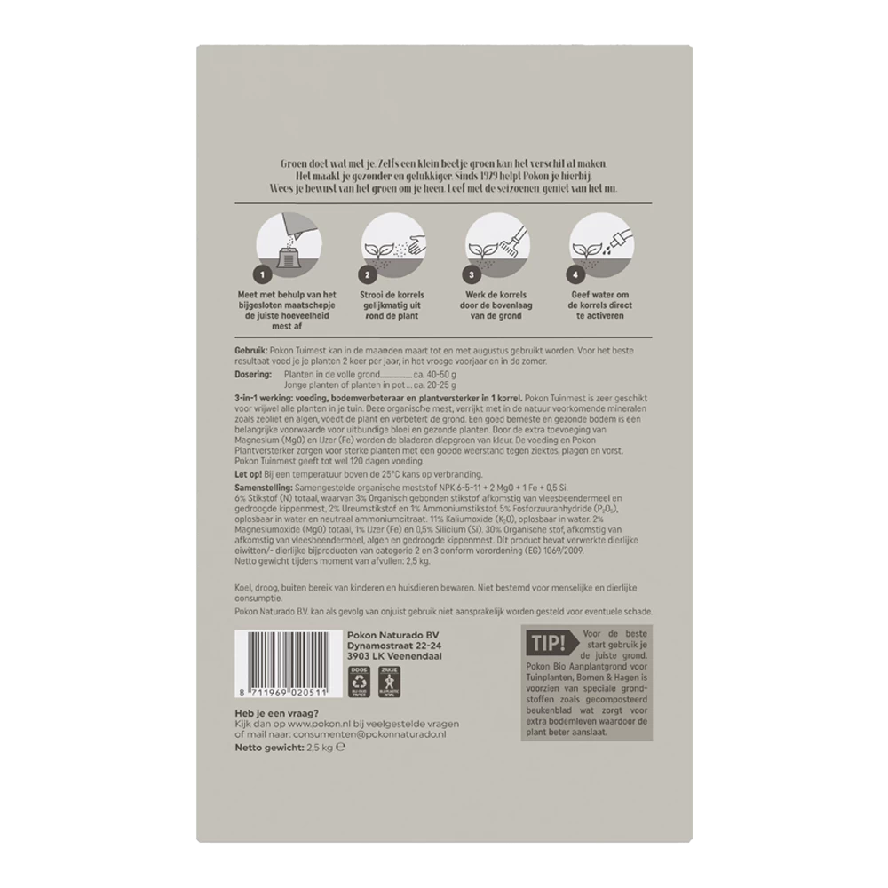 | Bemesting voor | Siertuin, Gazon, Moestuin |