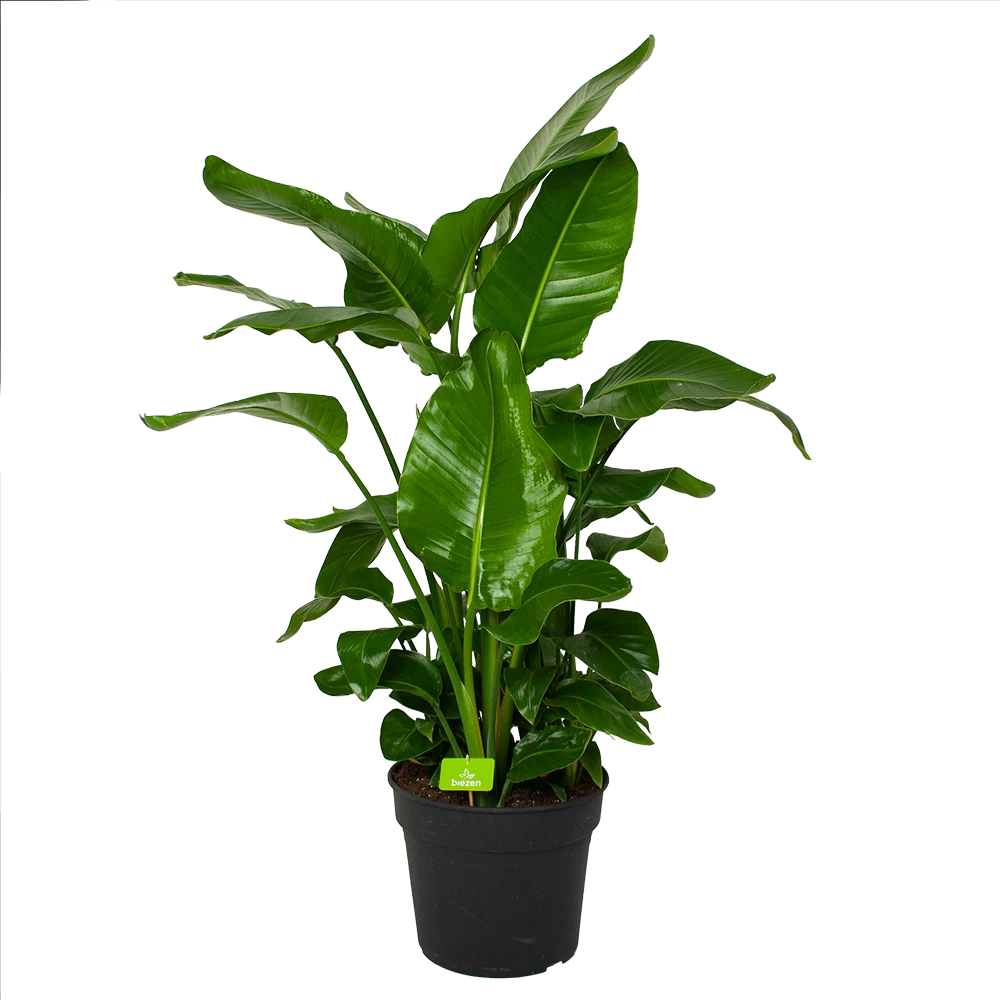 Creëer een tropische sfeer in huis met de prachtige Strelitzia Nicolai. Deze grote groene plant heeft veerachtige bladeren met af en toe wat kleine scheuren. De vorm en kleur van zijn bijzondere bloemen hebben hem de leuke bijnaam Paradijsvogelplant opgeleverd. Plaats de plant op een lichte plek uiterlijk zo’n 2 meter van het raam. Geef de Paradijsvogelplant 1 keer per week ruim water en houd de grond tussen de waterbeurten door licht vochtig.